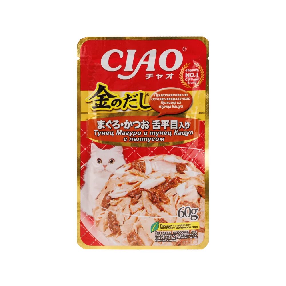 INABA Влажный корм для кошек, Ciao Kinnodashi, тунец магуро, тунец кацуо, палтус, в желе, 60 г