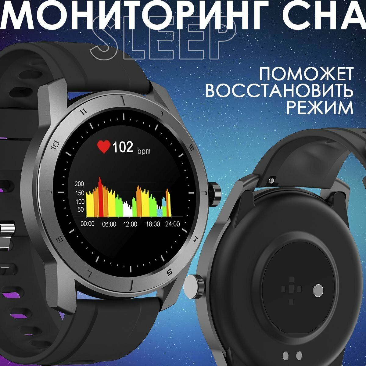 | Мониторинг | акселерометр, калорий, пульса, сна, температуры тела, тонометр, уровня кислорода в крови, физической активности |