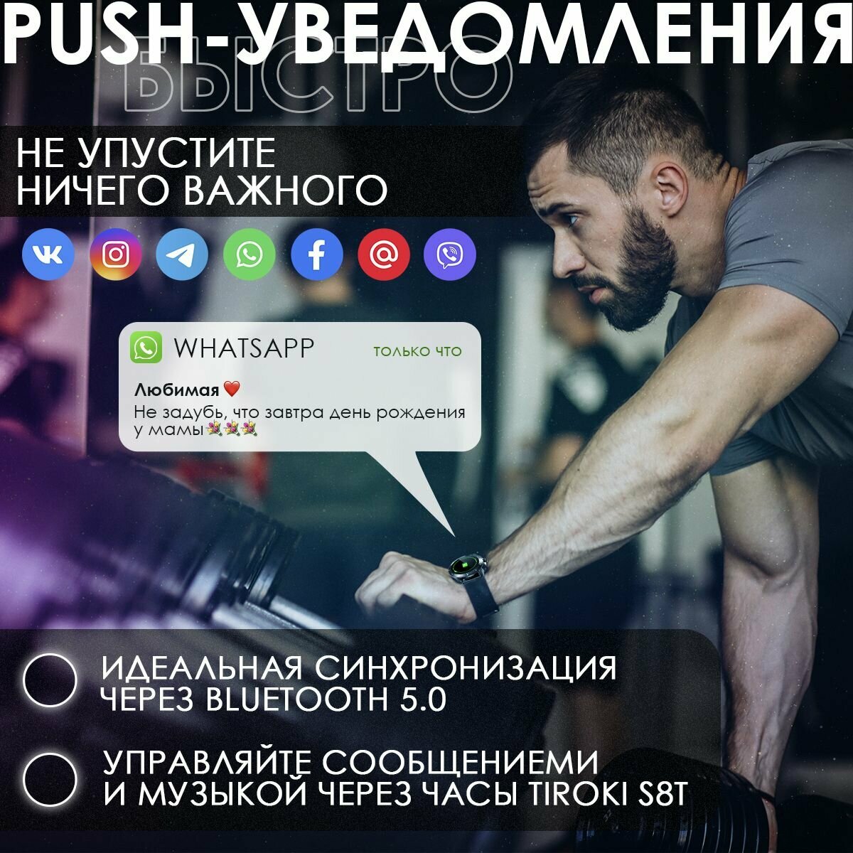 Смарт часы Tiroki S8T / Smart Watch Bluetooth / Умные часы мужские/ Фитнес браслет черный интересное: