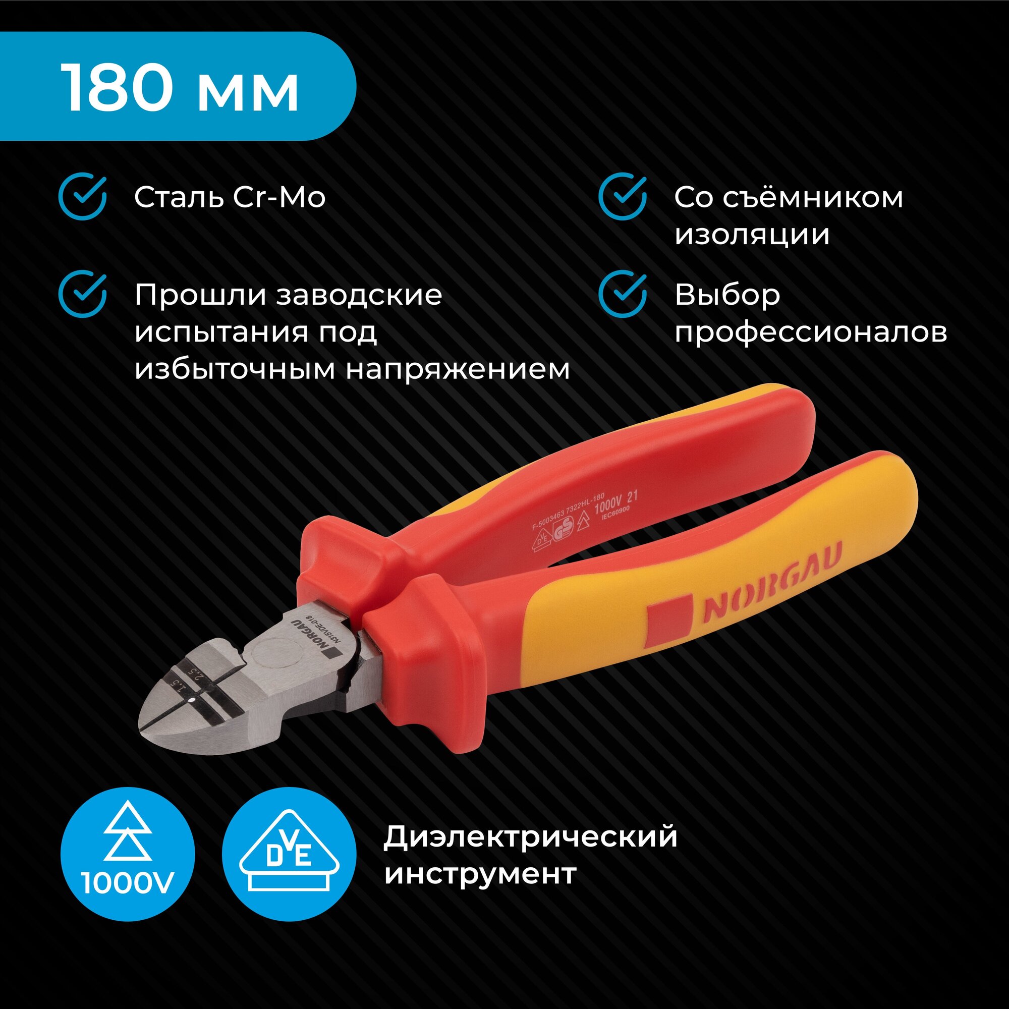 Бокорезы диэлектрические NORGAU Industrial из CrMo стали со съёмниками изоляции и двухкомпонентными рукоятками, VDE до 1000 V, 180 м интересное: