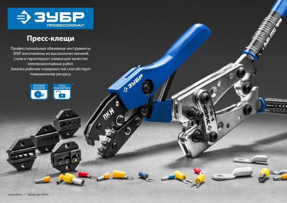 ЗУБР ПКГ-50 пресс-клещи усиленные гексагональные для медных наконечников и гильз 6 - 50 мм2, ( 45453 ) интересное:
