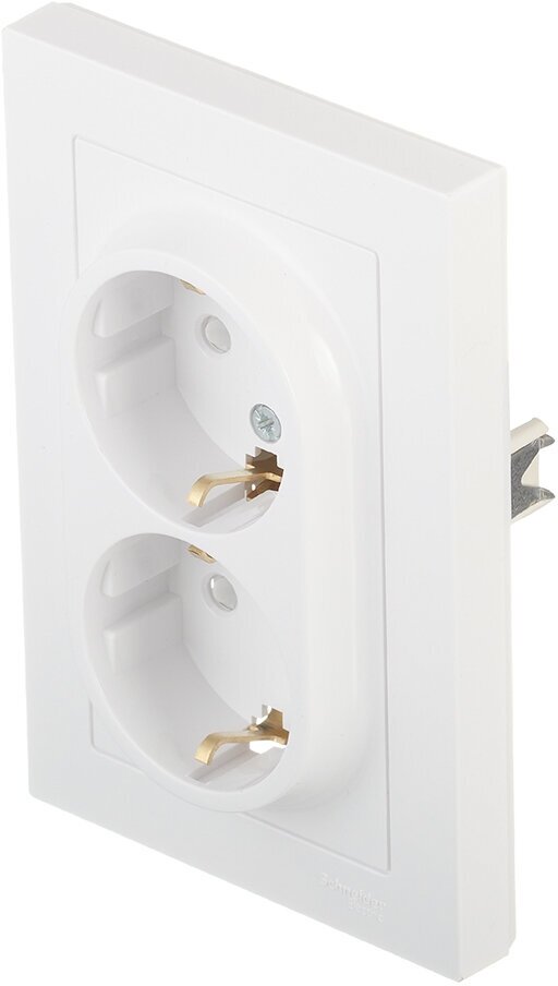 Розетка с рамкой Schneider Electric Atlas Design ATN000126 двойная скрытая установка белая с заземлением со шторками