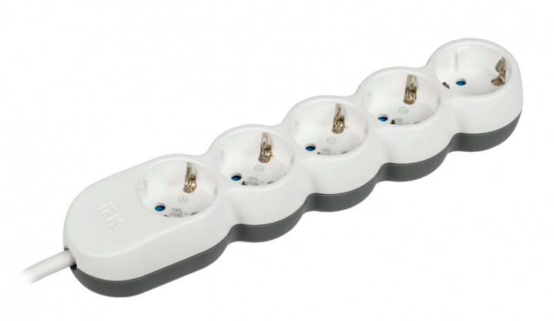Удлинитель IEK Uno У05, ПВС 3 x 1,5 мм², с заземлением, 5 розеток, 3 м, белый