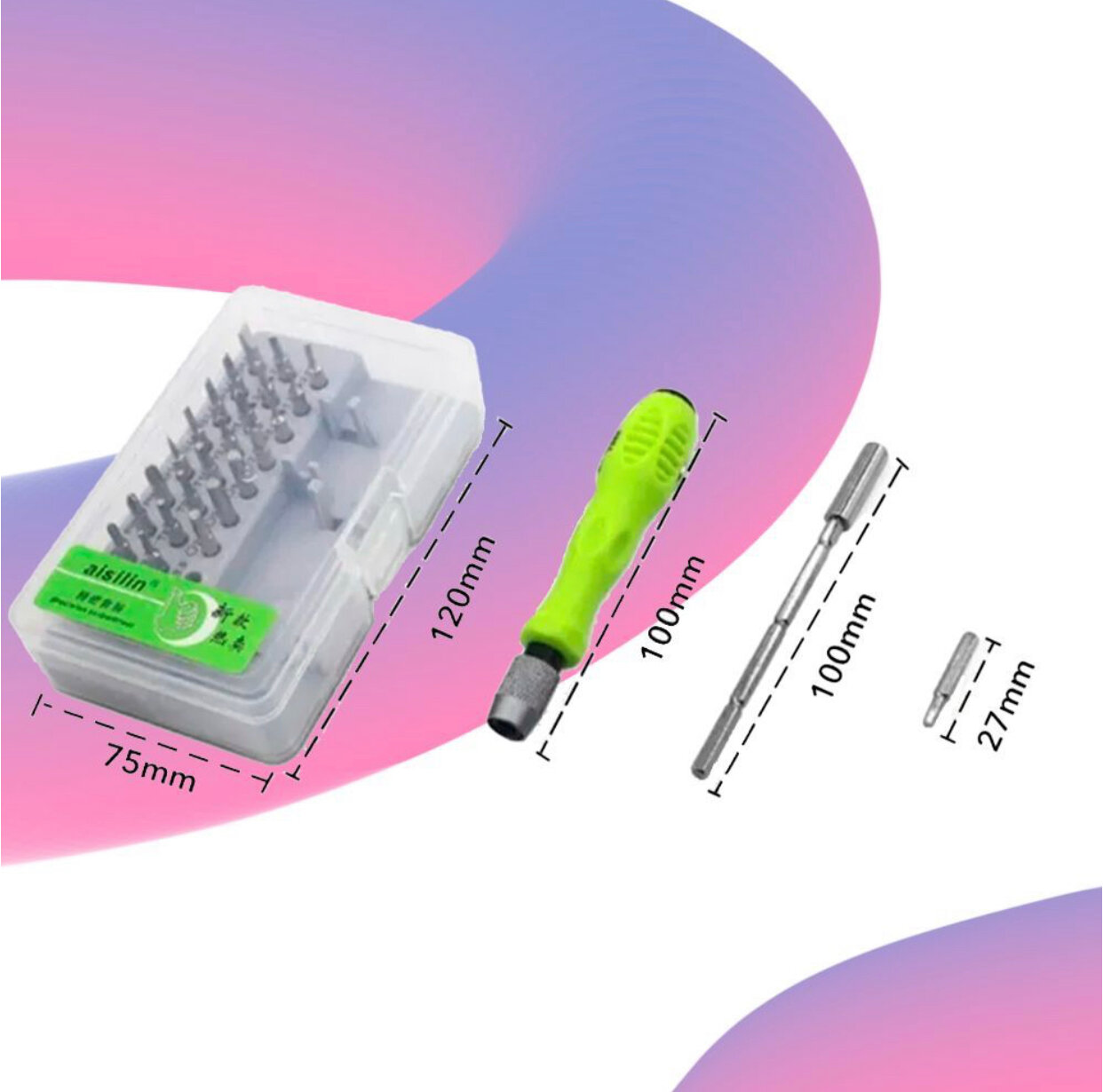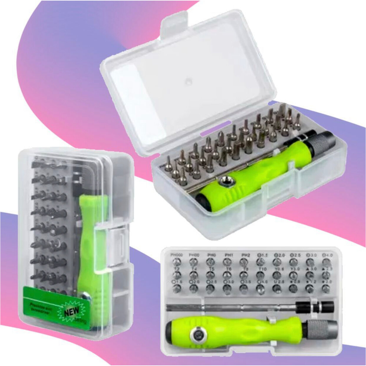 Прецизионный набор отвертка + биты для работ 32 в 1, зеленый интересное: