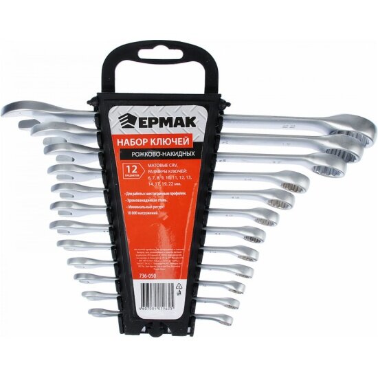 Набор ключей рожково-накидных Ермак , 12 предм., 6-22мм, матовые CRV, пластик холдер интересное: