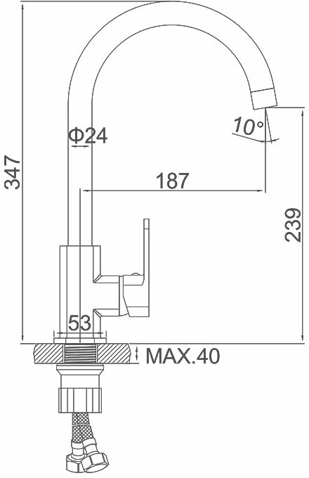 Смеситель кухня LEDEME картридж д.35мм боковой с гайкой L4033-2