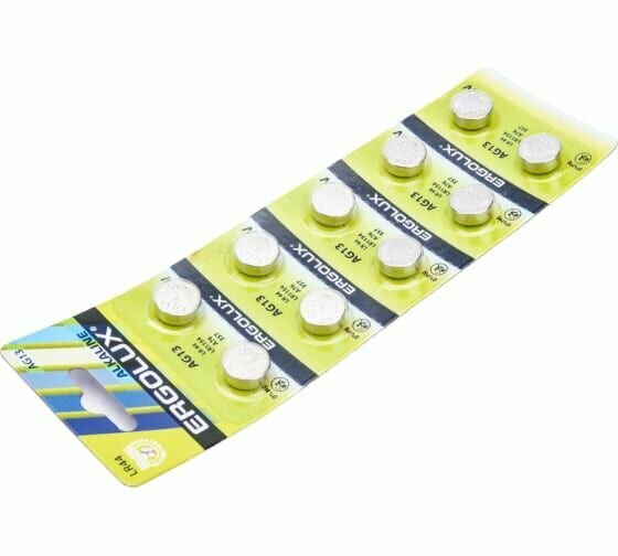 Батарейки щелочные Ergolux - тип AG13, 1.5В, 10 шт. в упаковке