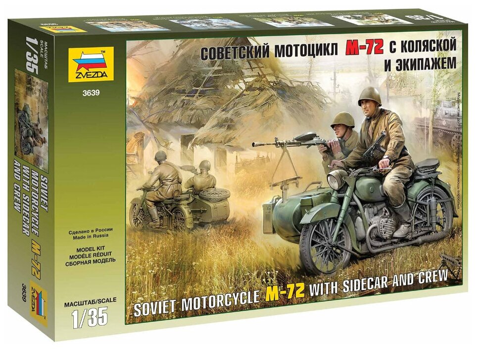 Сборная модель ZVEZDA Советский мотоцикл М-72 с коляской и экипажем (3639) 1:35
