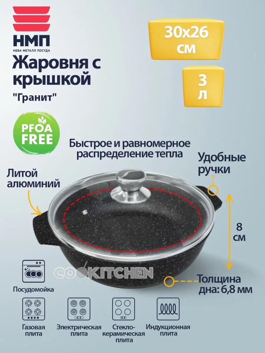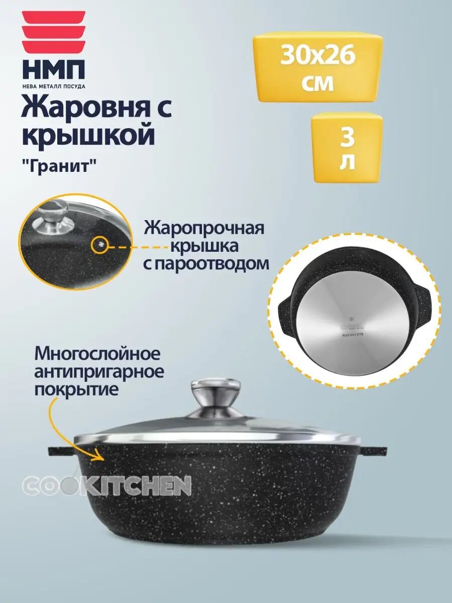 Жаровня НМП Индукция Гранит со стекл. крышкой 3л литая (L186530i) интересное:
