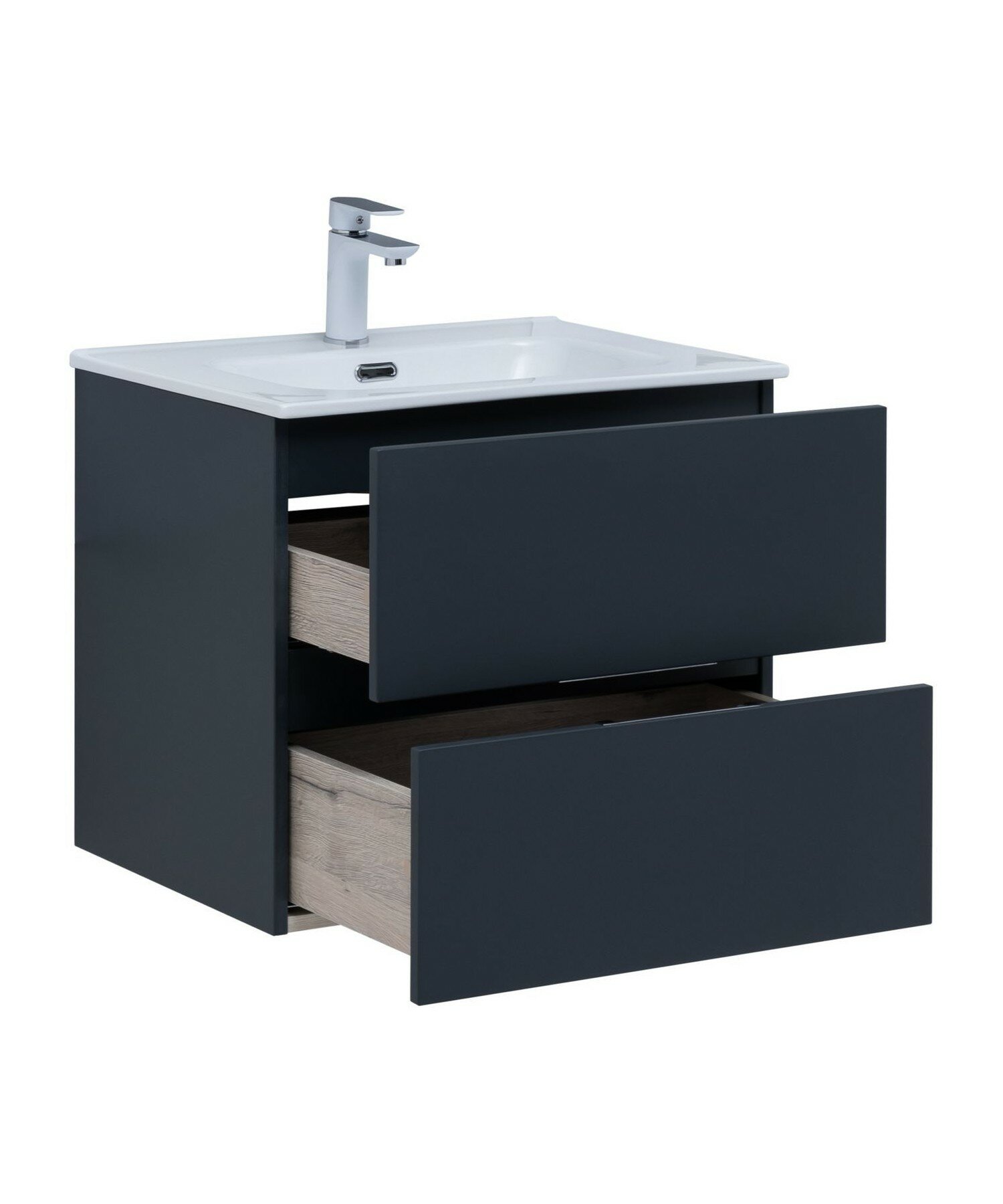 Тумба с раковиной Алвита New 60 2 ящика подвесная антрацит матовая