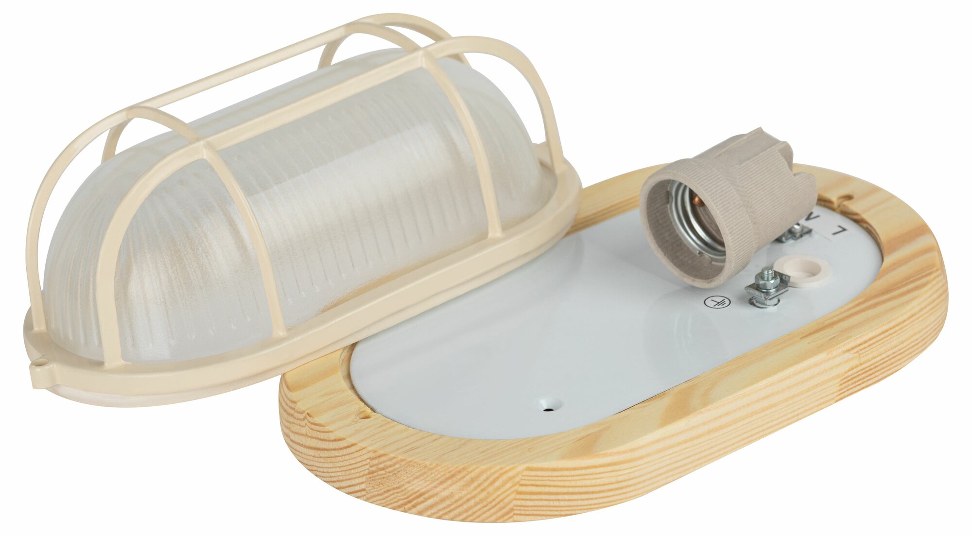 Светильник настенно-потолочный с решеткой ЭРА 60Вт Е27 овал клён Тмакс=130°C IP54 Б0048417 НБО 04-60-012