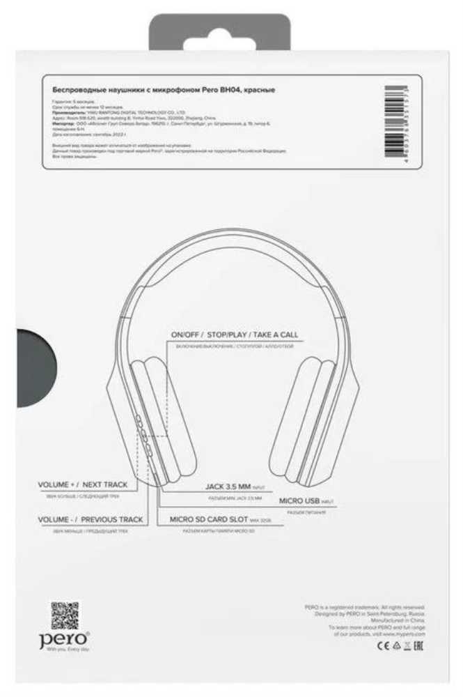 Беспроводные наушники Pero BH04 Red, полноразмерные . интересное: