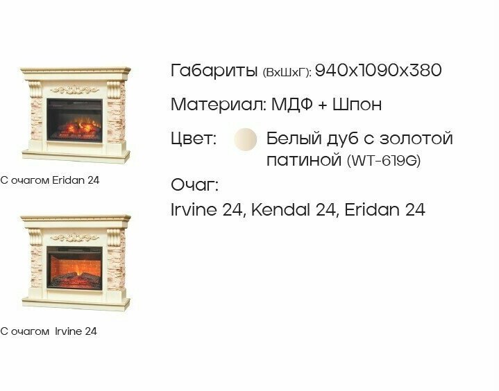 Портал каминный RealFlame Marseille Luxe 24 WT, белый дуб интересное: