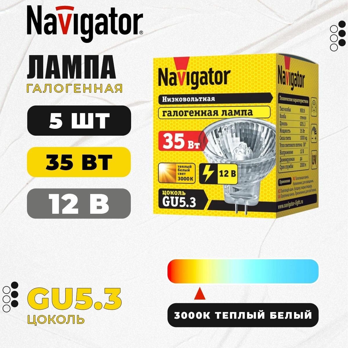 Купить (5 шт.) Галогенная лампочка Navigator MR16 GU5.3 12V 35W NH-MR16-35-12-GU5.3 94203