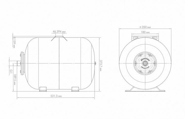 Гидроаккумулятор горизонтальный ГП 50 к, комбинированный фланец 7058 .