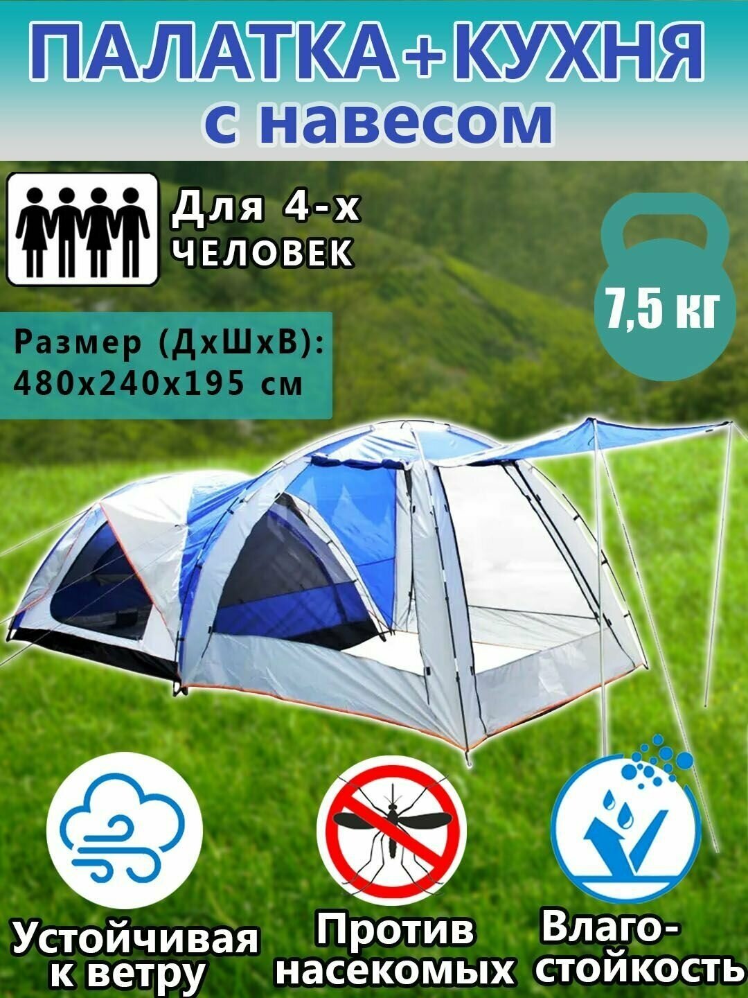 Палатка туристическая, 240X240X190, в сумке-чехле, вмещает до 4-х человек 1706 интересное: