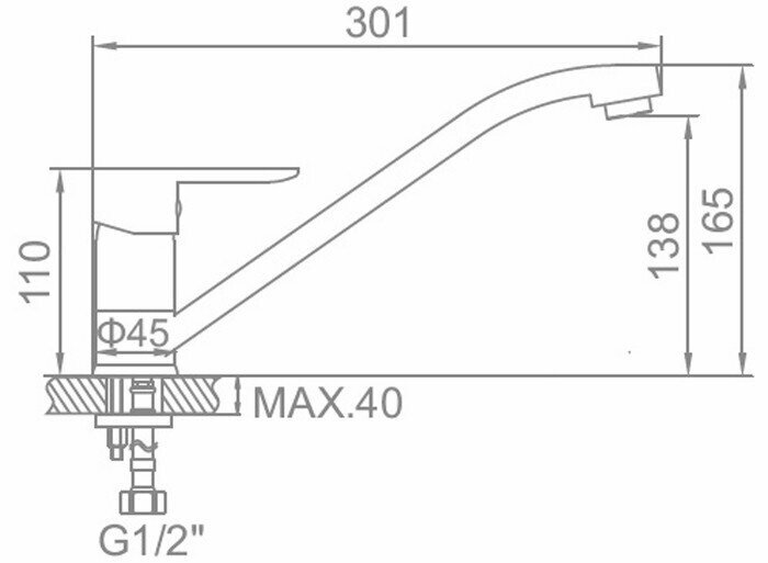 | Длина излива | 262 мм |