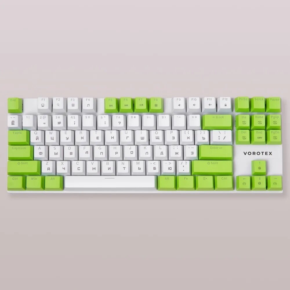 Клавиатура игровая проводная VOROTEX K87S Red Switch, русская раскладка (Зелёный, белый)
