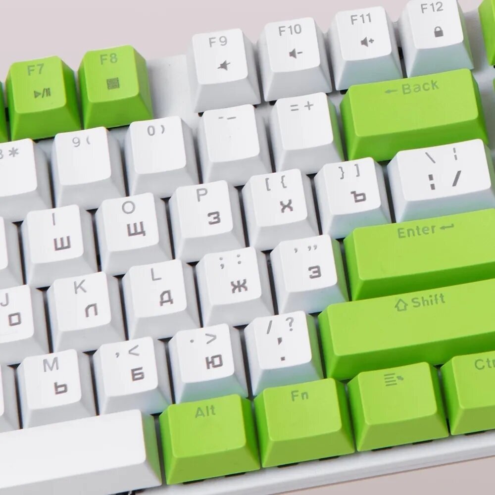 Клавиатура игровая проводная Booox K87 Blue Switch, русская раскладка (Белый, зелёный)