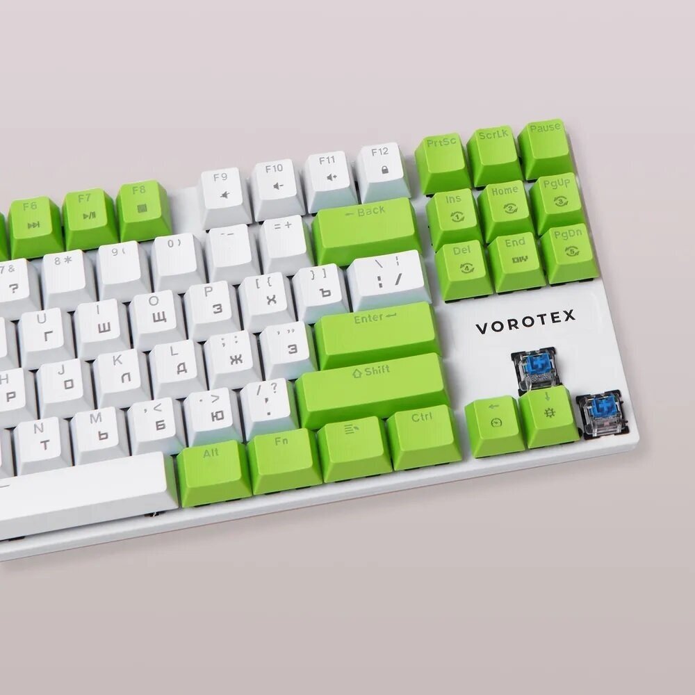 Игровая клавиатура VOROTEX K87S Blue Switch, белый/зеленый, русская