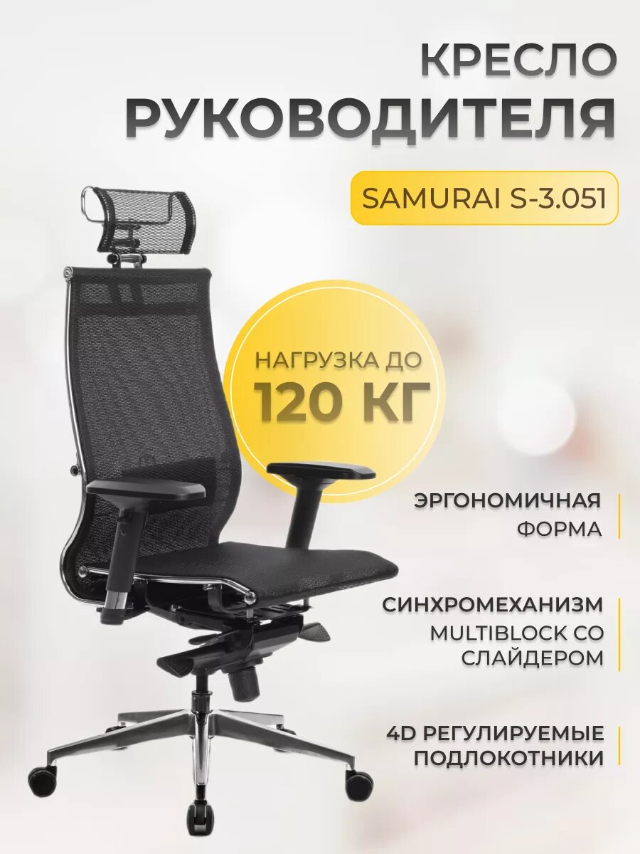 Кресло Samurai S-3.051 MPES,кресло Метта с механизмом качания, кресло компьютерное, кресло офисное, кресло самурай, кресло для дома и офиса (Черный)