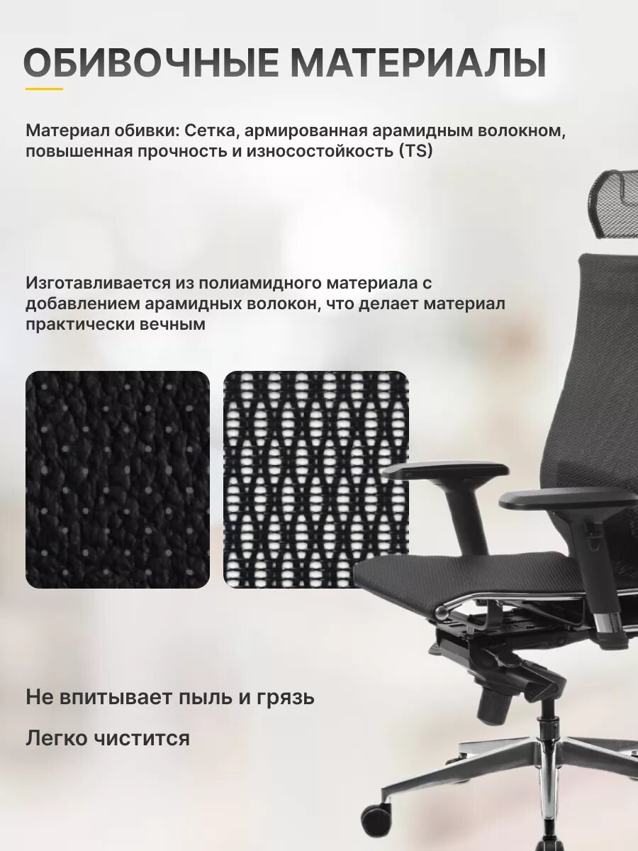 Кресло руководителя Метта "Samurai" S-1.03/ S-1.04, сетка-кевларовая нить черная, мультиблок