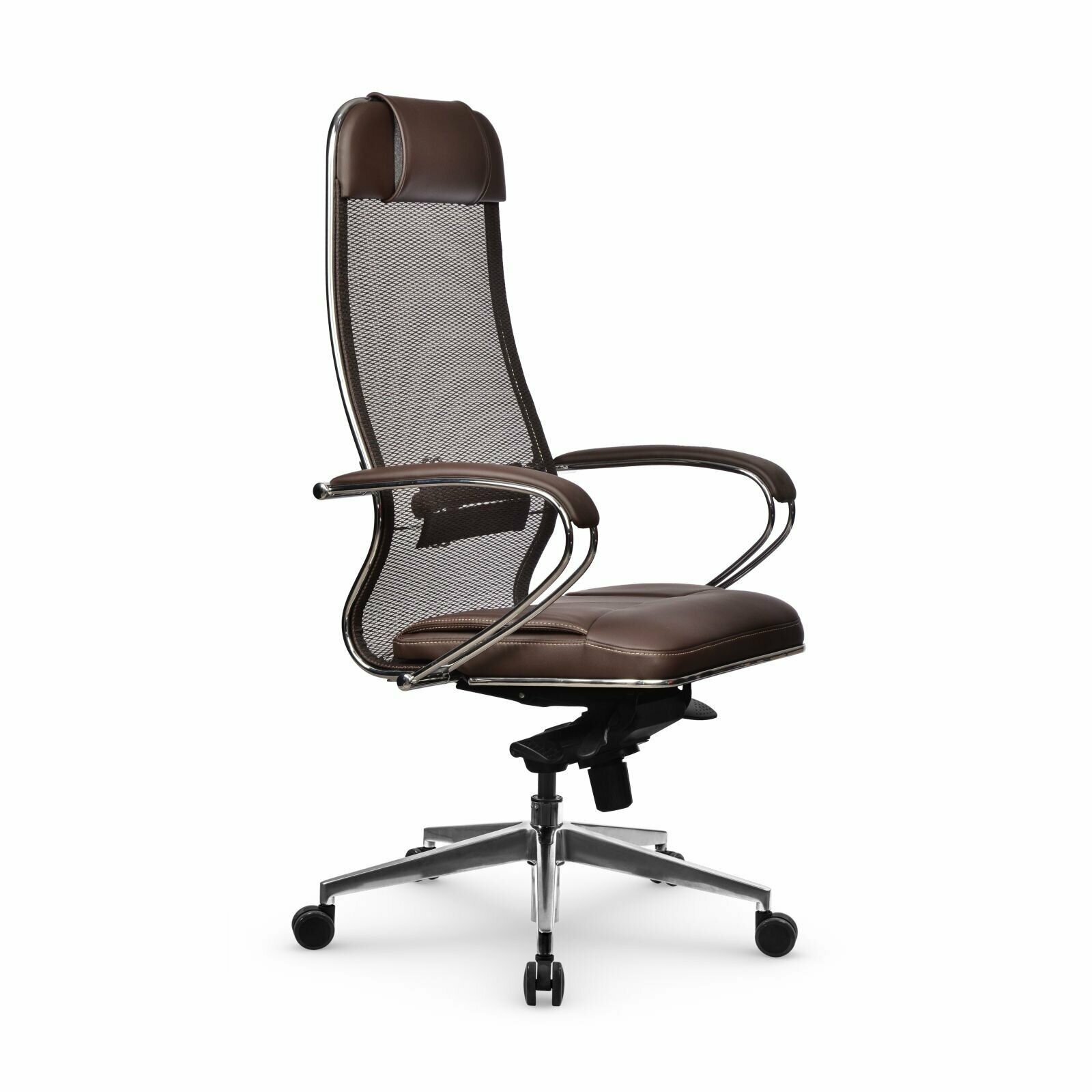 Кресло офисное метта «SAMURAI» SL-1, сверхпрочная ткань-сетка/кожа, темно-коричневое