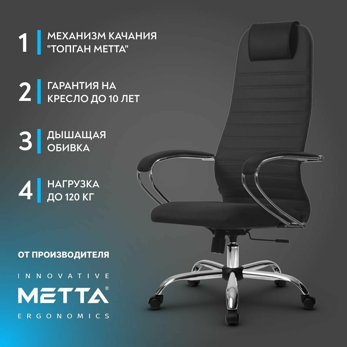 Кресло компьютерное Метта "SU-B-10", хром, ткань-сетка, механизм топ-ган, темно-серое