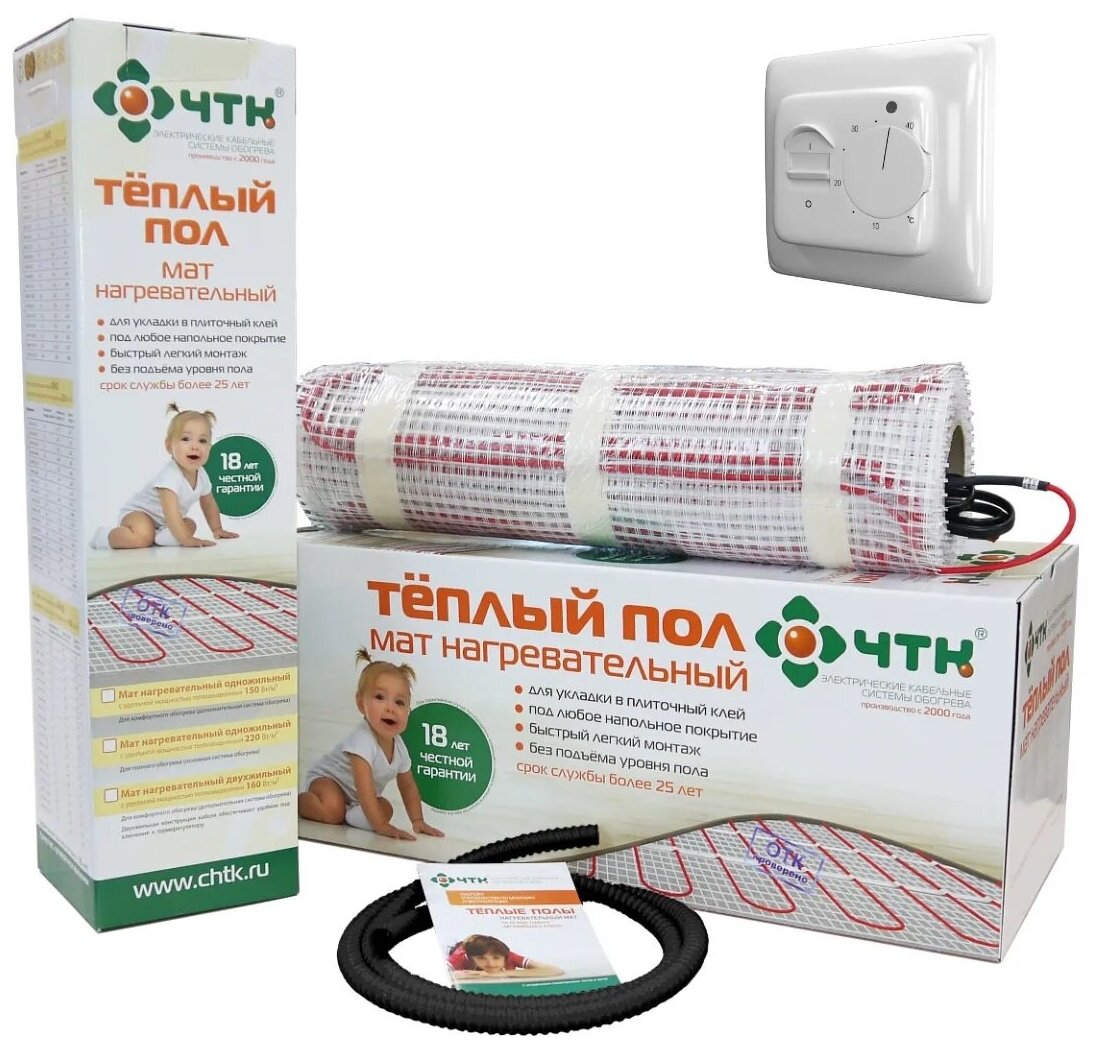 Комплект теплый пол ЧТК. Мат нагревательный МНД 9,0 кв.м. 1440 Вт. + Терморегулятор RTC 70 интересное: