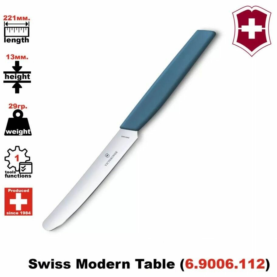 Швейцарский, столовый нож VICTORINOX Swiss Modern 6.9006.112, лезвие 11 см с прямой кромкой, синий