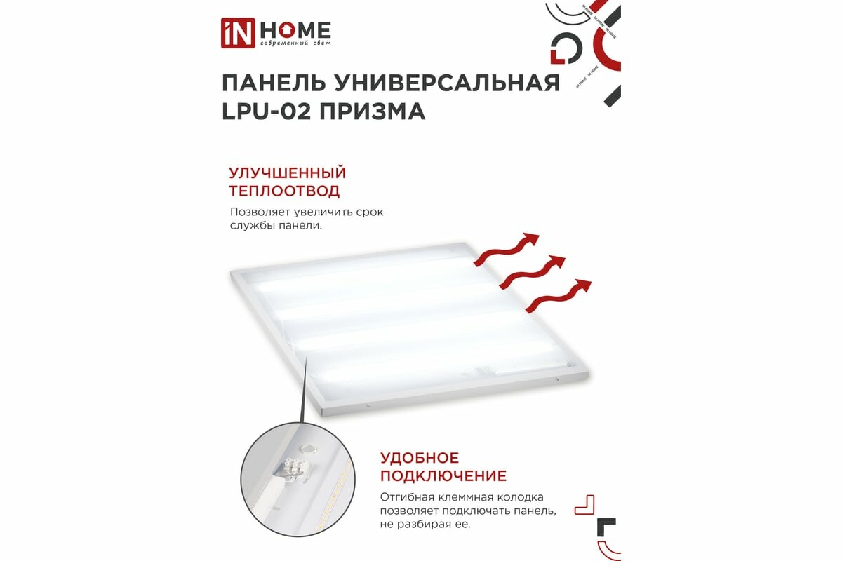 In Home LPU-02-ПРИЗМА 100Вт 6500К IP40 8500лм 230В 595х595х19мм встраив. с рассеив. призма универс. панель 4690612029795 (белый)