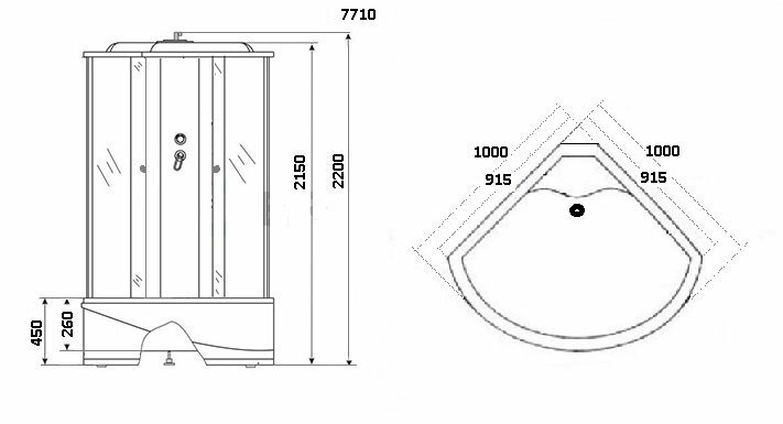 Душ.каб. NG-7710G (1000x1000х2150) высокий поддон стенки золото 4 места интересное: