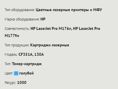Ниже Вы можете прочитать отзывы на Тонер-картридж Hi-Black CF351A для HP CLJ Pro MFP M176N/M177FW голубой 1000стр, ознакомится с подробными характеристиками, посмотреть интересные обзоры и фотографии на Тонер-картридж Hi-Black CF351A для HP CLJ Pro MFP M176N/M177FW голубой 1000стр.