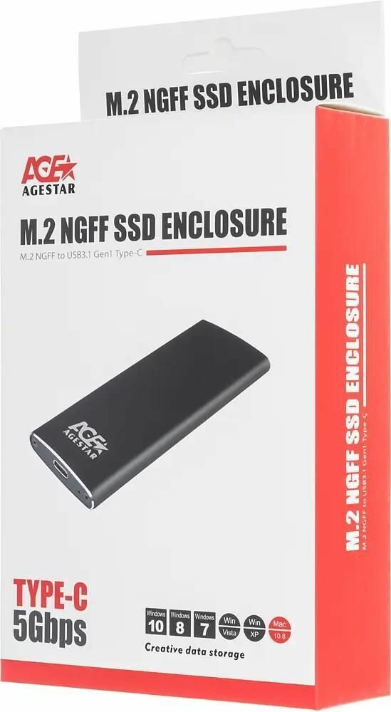 Купить Внешний корпус SSD AgeStar 3UBNF2C Sata III USB 3.1 USB3.1 алюминий черный M2 2280 B-key