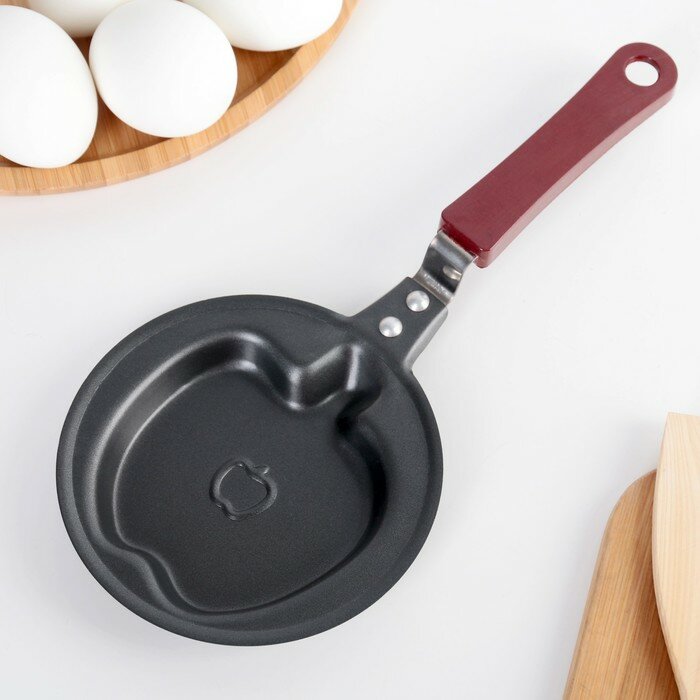 Купить Доляна Сковорода Доляна «Яблоко», d=12 см, пластиковая ручка, антипригарное покрытие, цвет чёрный