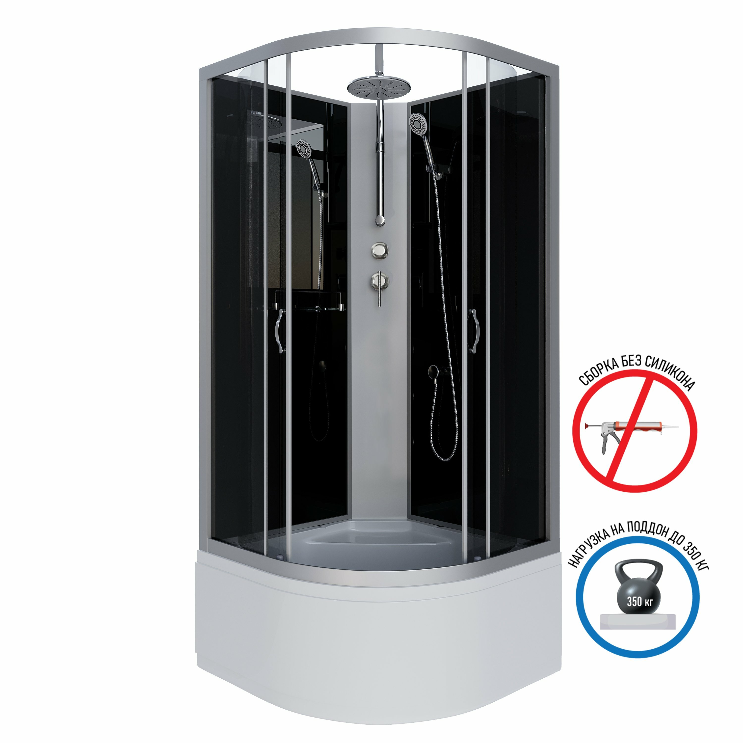 Душ.каб. NG-2509-14BKT (1000х1000х2100-2400) высокий поддон(40см) стекло тонированное 4 места интересное: