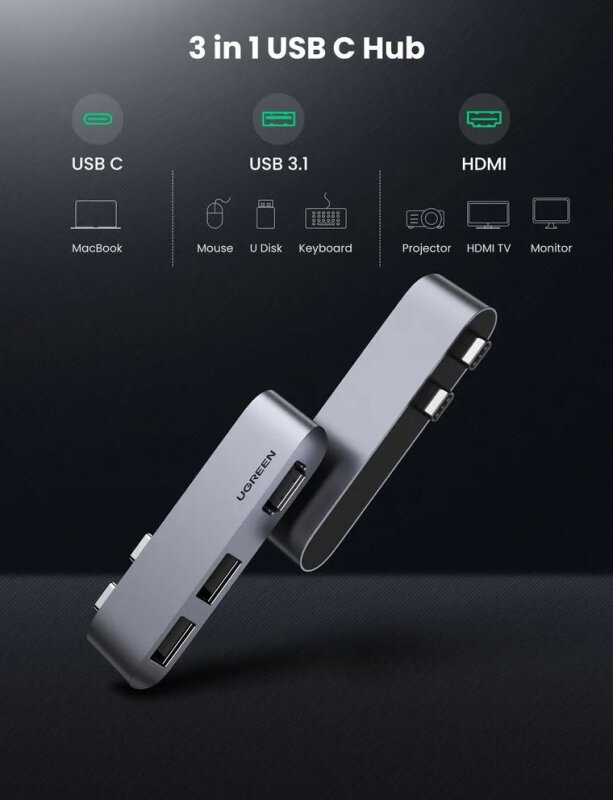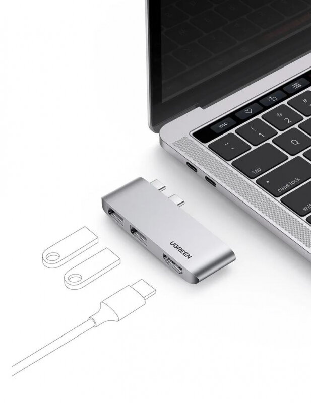 Разветвитель USB UGREEN для MacBook, 3 x USB 3.0, HDMI, SD/TF(80856)