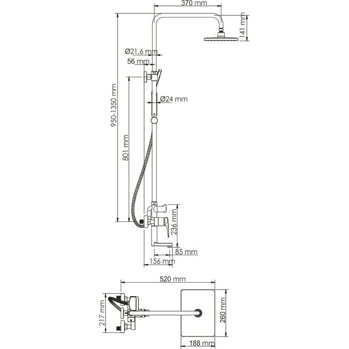 | Длина верхнего душа | 188 мм |