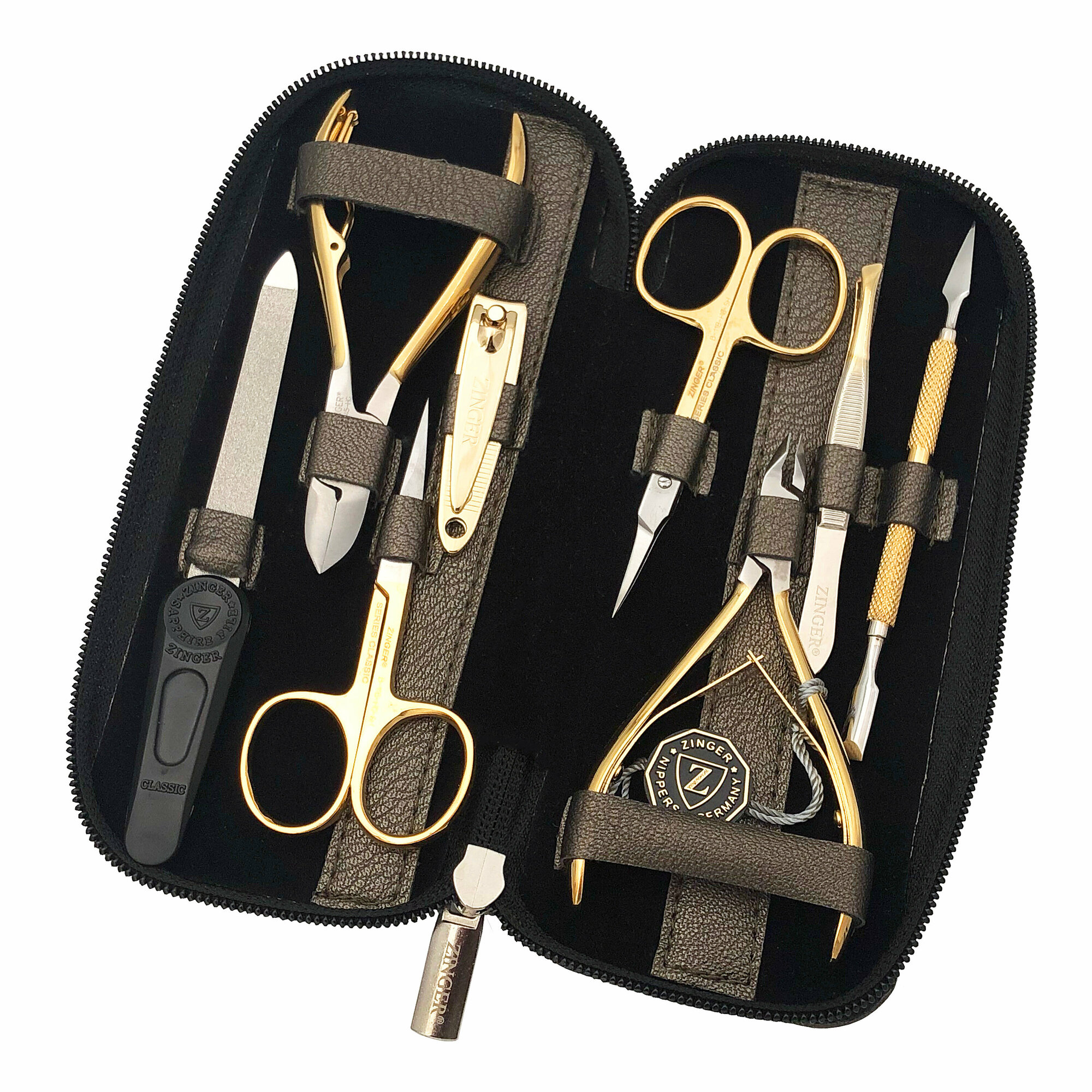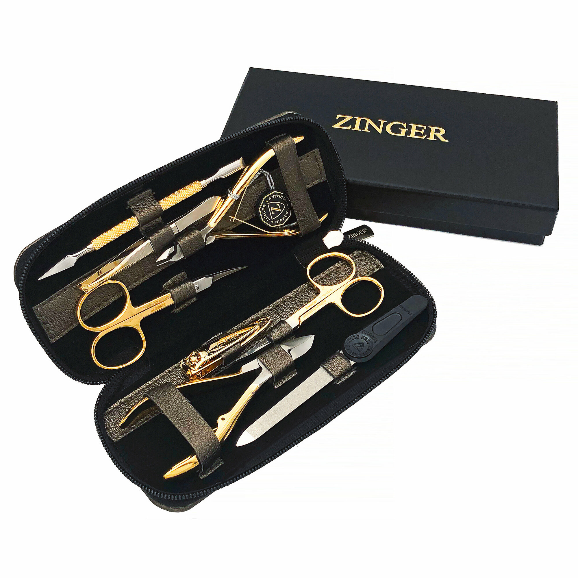 Маникюрный набор Zinger 7106 G, 8 предметов, позолоченный/черный-арт