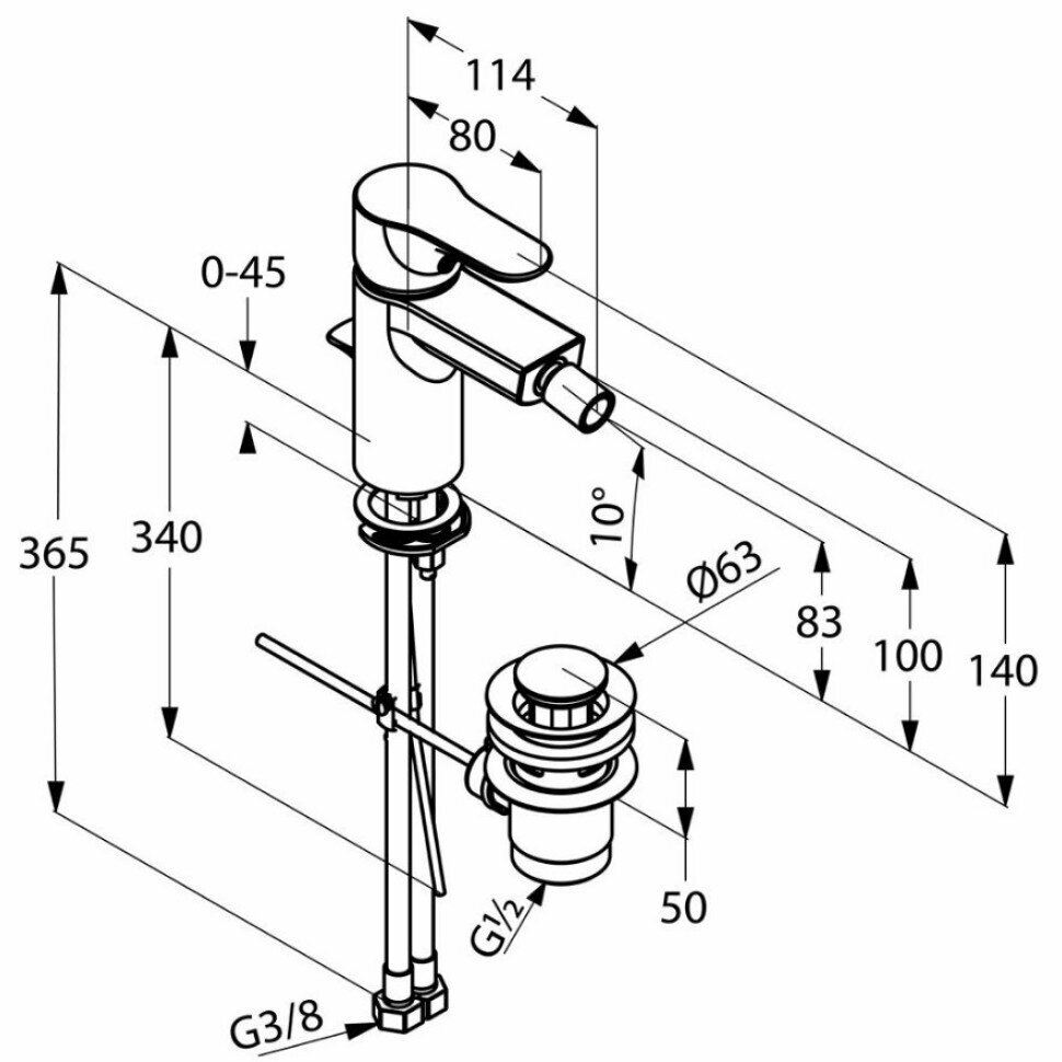 Смеситель для биде с донным клапаном Kludi Objekta 324160575