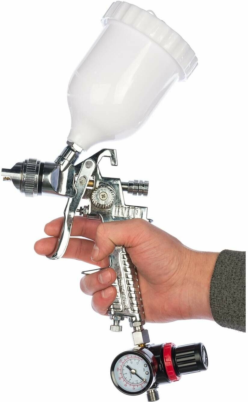 | Плюсы: | Отличное качество исполнения,удобно лежит в руке,увесистый,легко регулировать распыл и давление воздуха.В целом хороший краскопульт для новичка в покрасочных работах. |