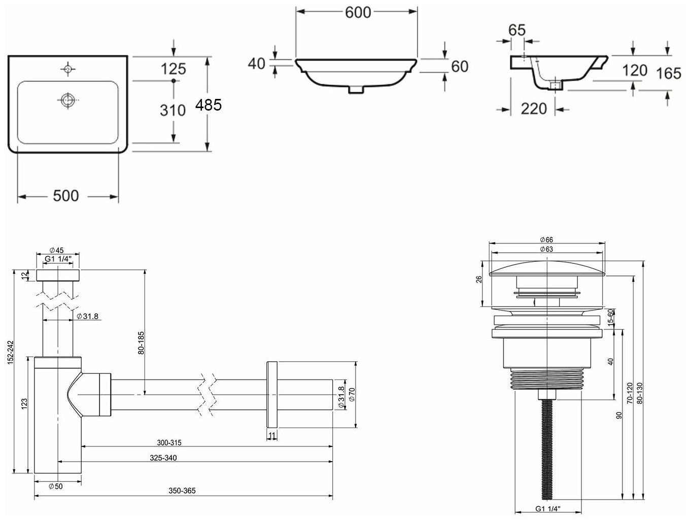 Врезная раковина в ванную Lavinia Boho Bathroom Sink 21520386 в комплекте 3 в 1: умывальник белый, донный клапан и сифон в цвете матовый черный