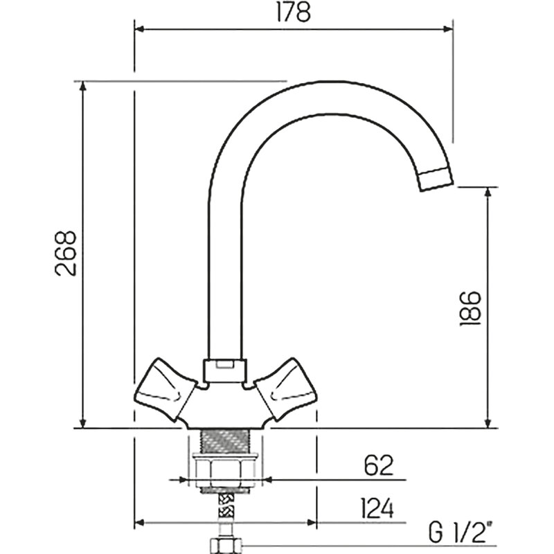 Смеситель для кухни, РМС SL116-274F, поворотный, двухвентильный, с гибкой подводкой