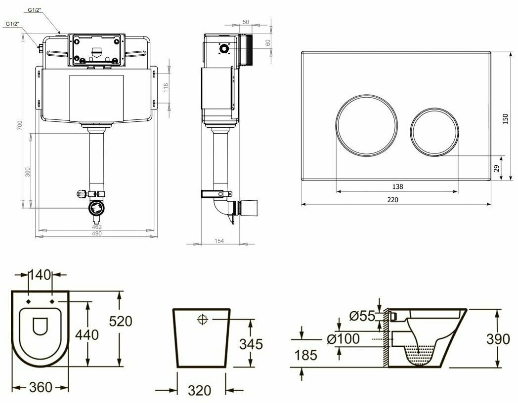 | Комплектация | бачок / звукоизоляционный комплект / монтажный набор креплений / панель смыва / сиденье |