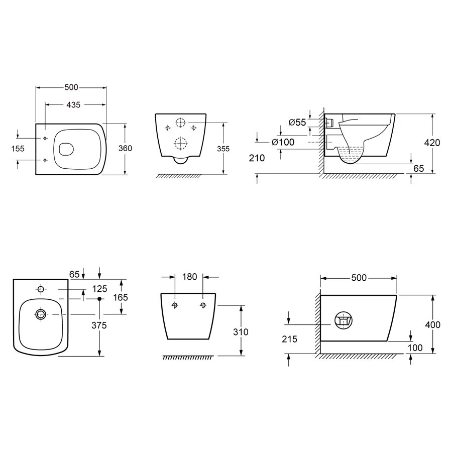 Комплект 2 в 1 Lavinia Boho Aveo Rimless: подвесной безободковый унитаз и подвесное биде, 21031008