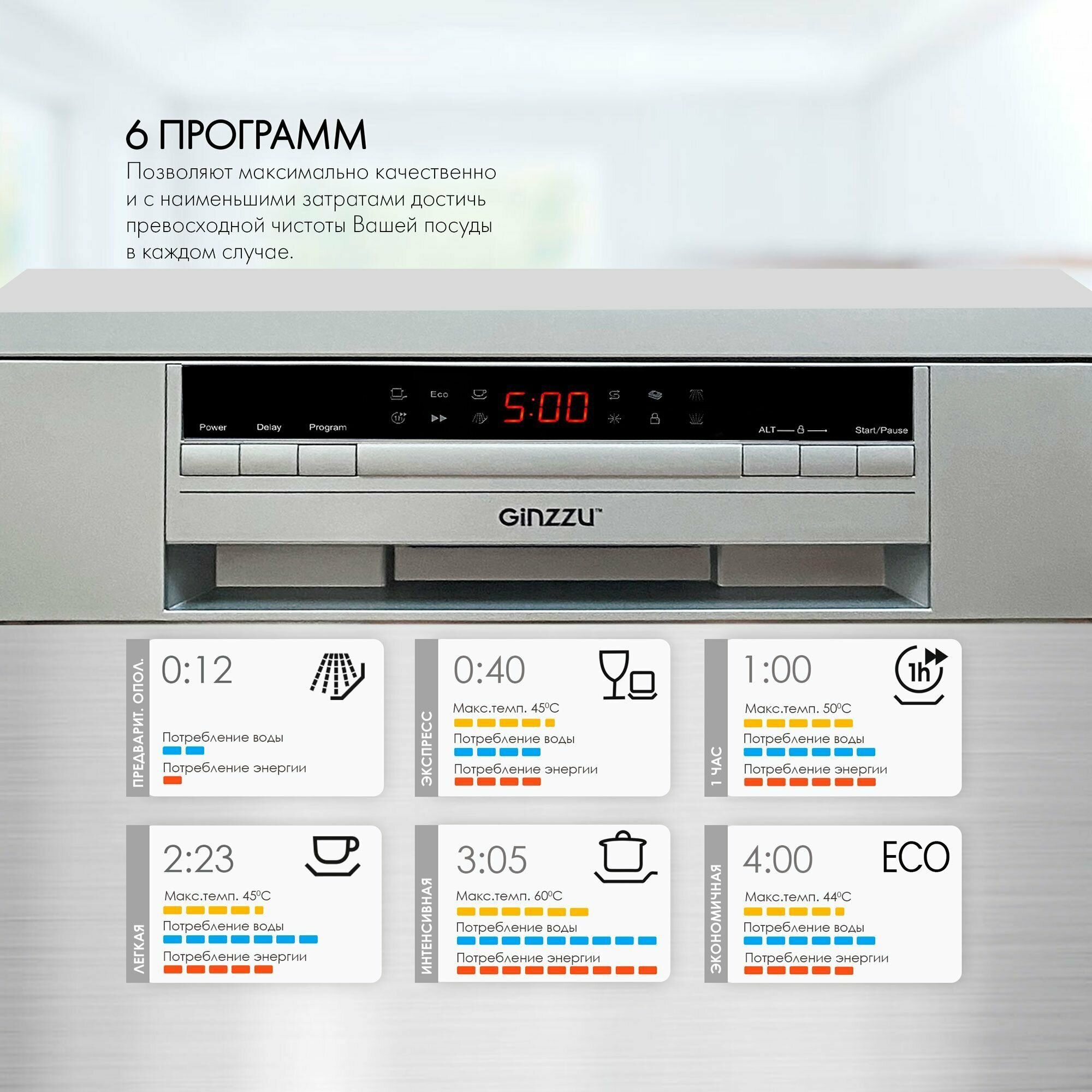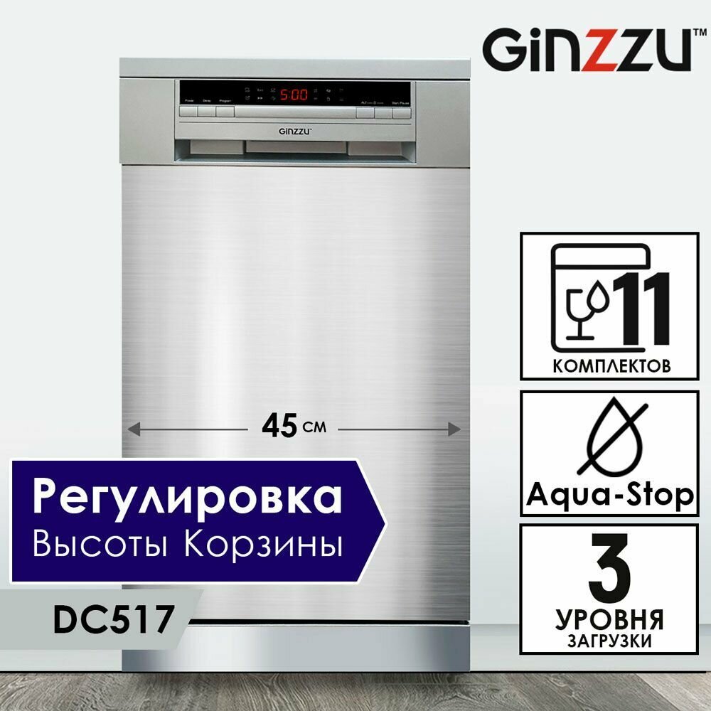 Посудомоечная машина Ginzzu DC517, отдельностоящая, 45см, 11 комплектов, средство 3в1 интересное: