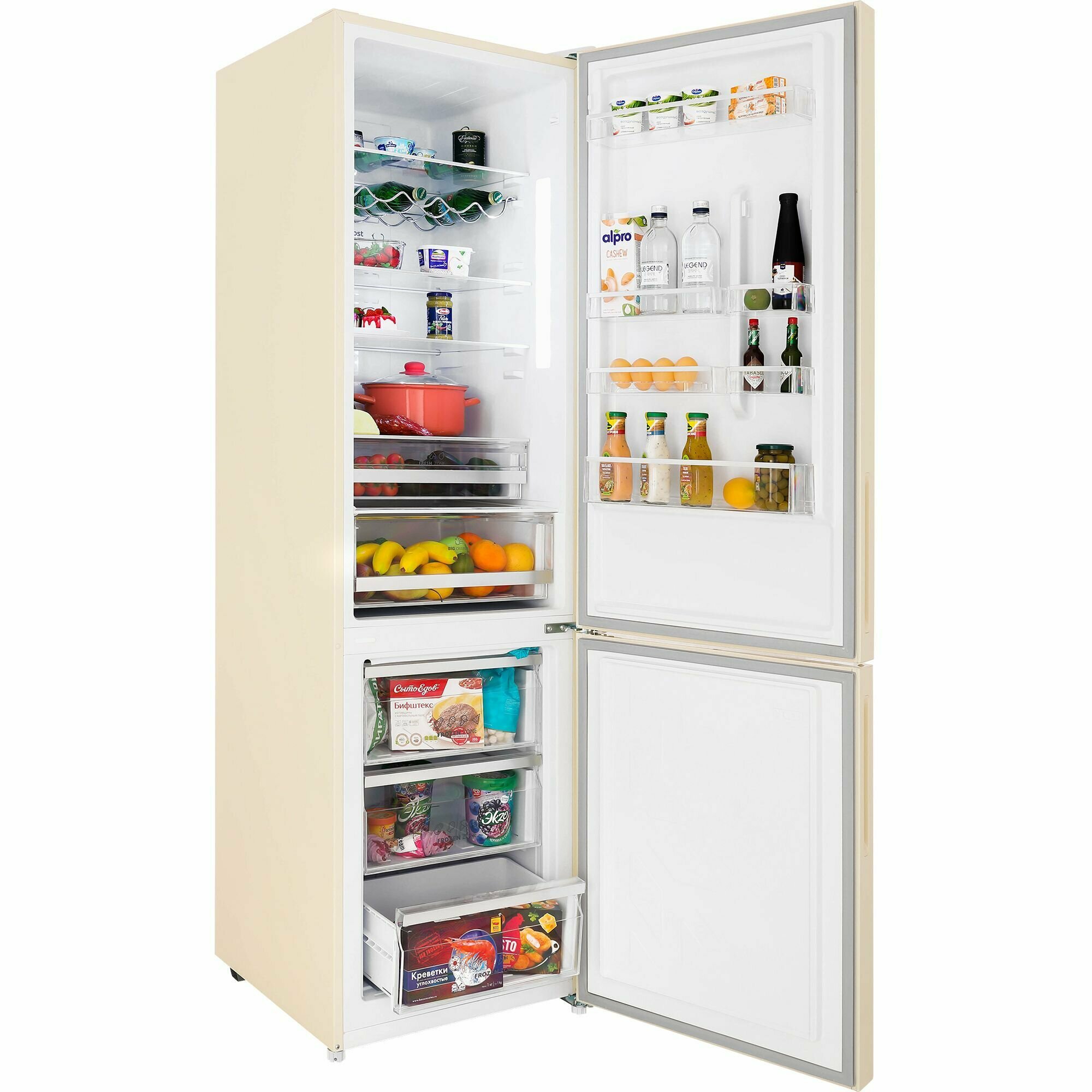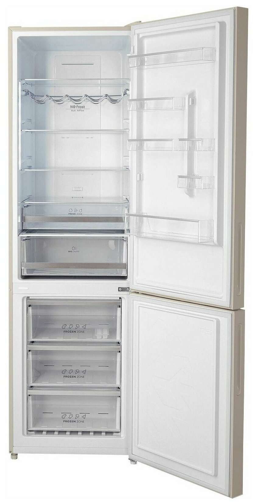 Холодильник HIBERG RFC-400DX NFGY inverter, объем 380л, NO FROST, полка для бутылок, фантомный диспле, бежевое стекло