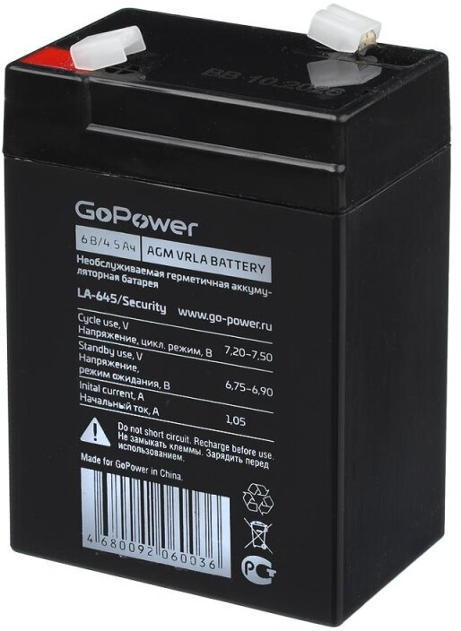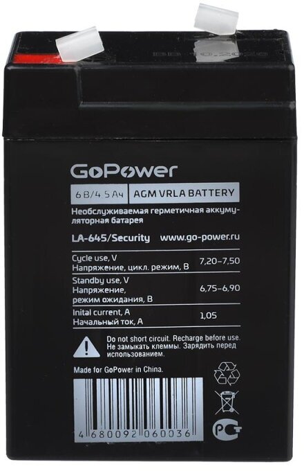 Аккумулятор GoPower LA 615 6В 1,5Ач (6V 1.5Ah) для весов, детского электромобиля, аварийного освещения, кассы, GPS оборудования, фонаря и весов