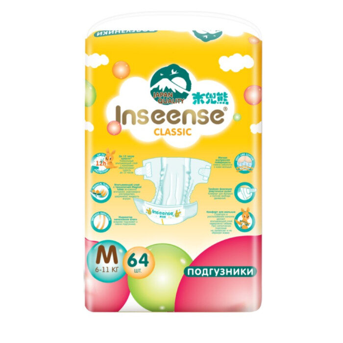 Подгузники INSEENSE Classic M (6-11 кг) 64 шт