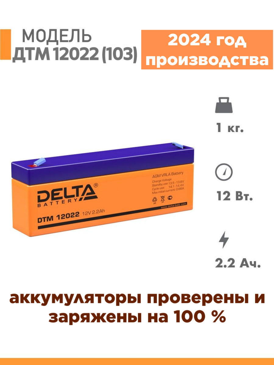 Аккумуляторная батарея DELTA Для источника бесперебойного питания, DTM 12022, 12 В, 2,2 Ач (DTM 12022)